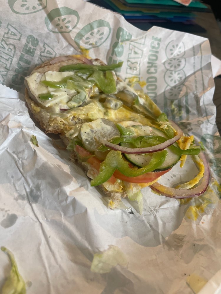 The Veggie Delite- sandwich is crispy, crunchy, vegetarian perfection. With lettuce, baby spinach, tomatoes, cucumbers, green peppers and red onions, all on our Hearty Multigrain bread.